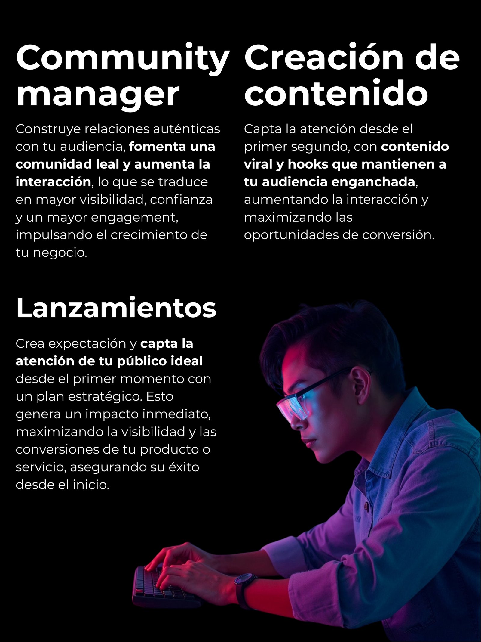 Desarrollamos estrategias y contenido diseñado para atraer, persuadir y convertir a tus clientes potenciales en compradores, aumentando tus ventas.